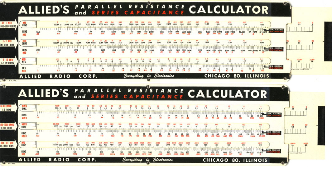 1949, Double sided. On one side it has several scales to compute Parallel Resistance. It also has a standard slide rule.