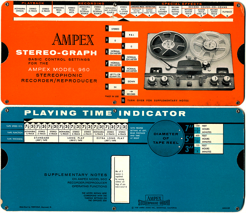Ampex Stereo-Graph slide chart of basic control settings for the Ampex 960 Stereophonic Tape Recorder/Reproducer.