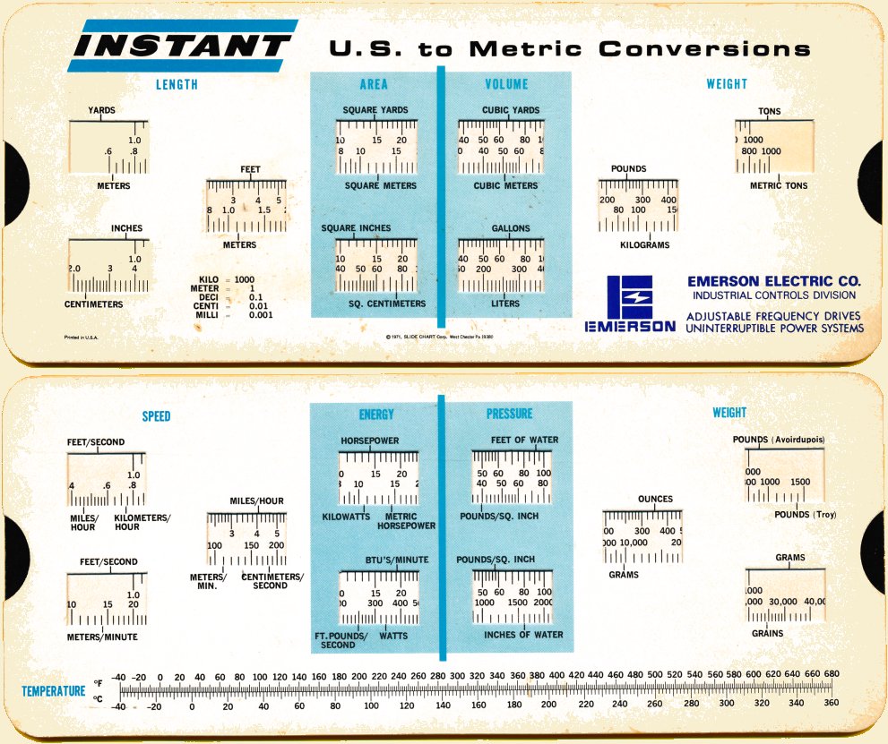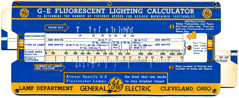 This two sided General Electric slide chart has two sliders which may be adjusted independently of each other.