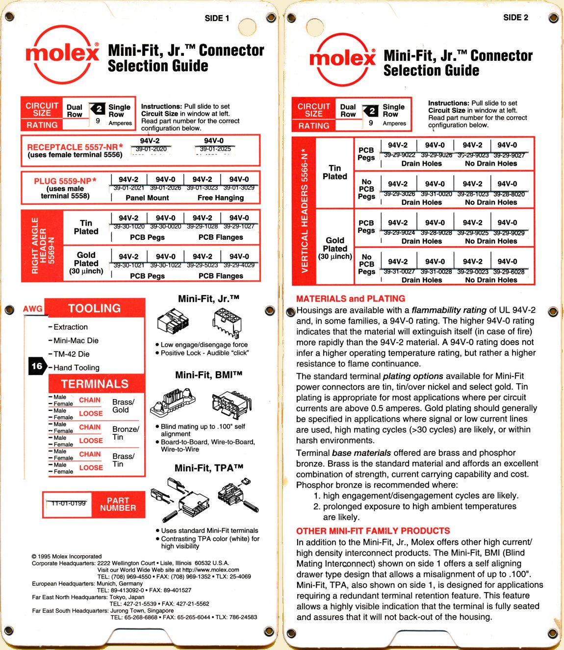 Two sided slide chart for selecting Molex Mini-Fit connectors.