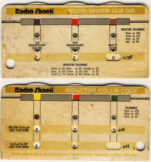 This small coder from Radio Shack shows resistor and capactor color markings on one side and the inductor color code on the other.