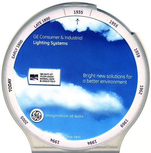 This GE Lighting Systems digitaldiscwheelTM and the one below are a unique promotional and distribution idea combining Wheel Charts with new digital technology.