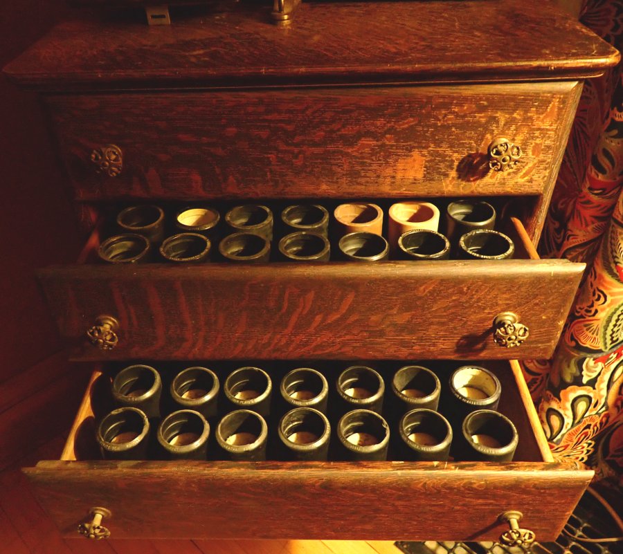 The cabinet holds 252 cylinders and each post is numbered for indexing. Larger Photo (use your back button to return to this page) Larger Photo Edison Combination Attachment Edison cylinder storage cabinet Edison Standard Operating Instructions View on-line Edison Combination Attachment Instructions View on-line