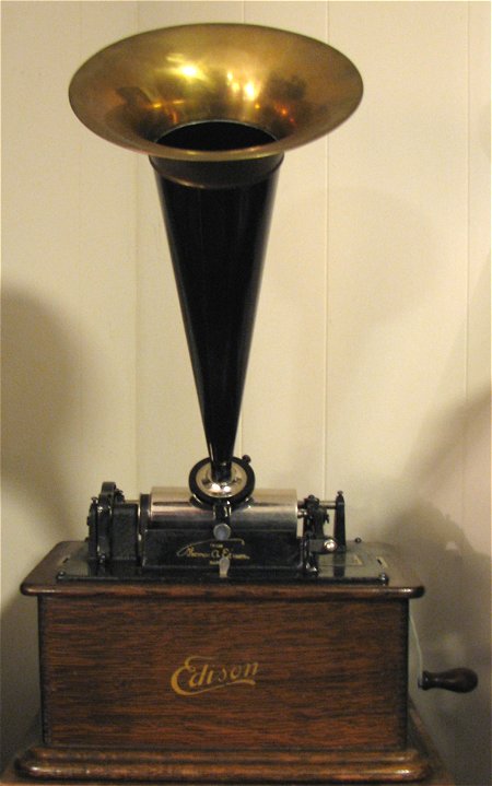 Produced in 1906, this 2 minute Edison Cylinder Player came complete with it's "Witches Hat" horn and the original finish.