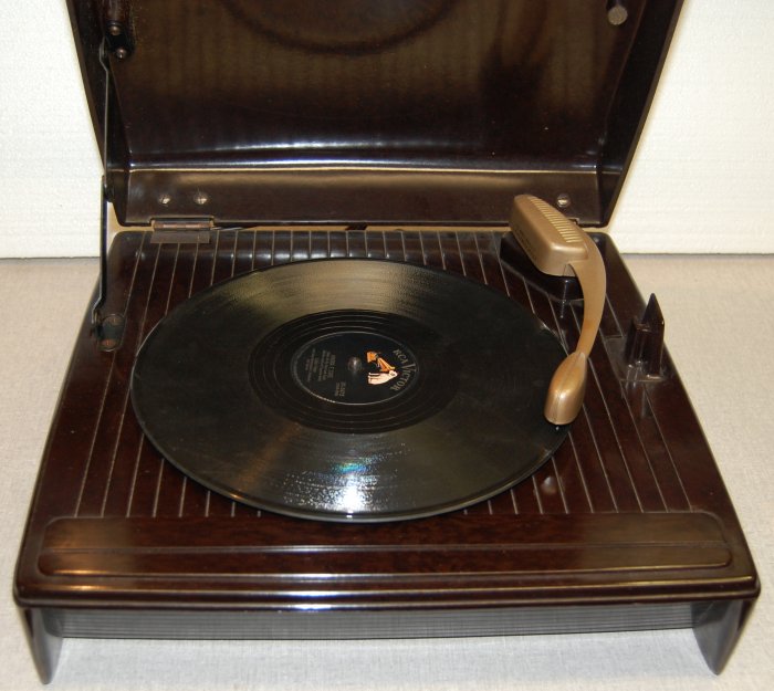 This RCA 78 RPM record player was designed to plug into RCA radios with a phono jack input.