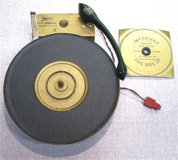 This Zenith Cobra-Matic Micro Adapter was designed to allow the playing of 33 and 45 RPM records on a Zenith 78 RPM Cobra-Matic record