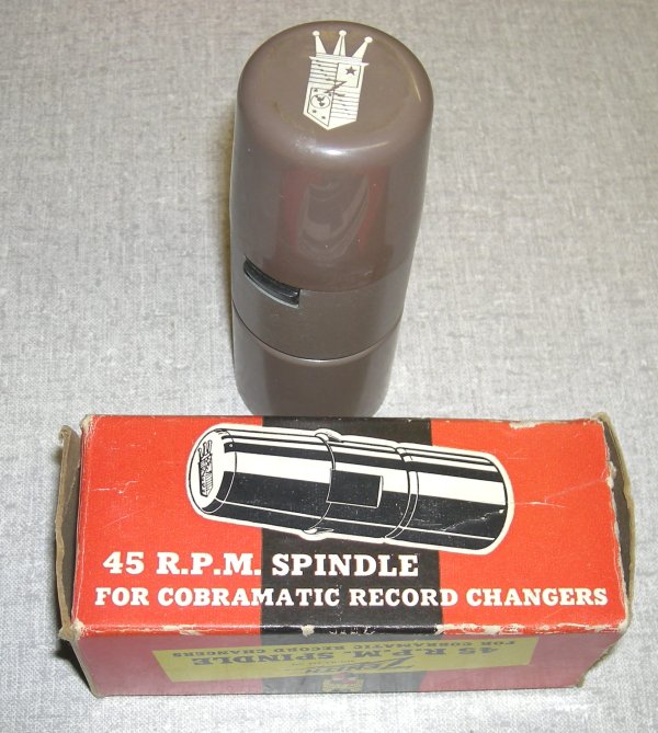 player. You placed the adapter over the spindle on a single speed 78 RPM Cobra-Matic record player using the hole by the tone arm. A rubber wheel underneath rode