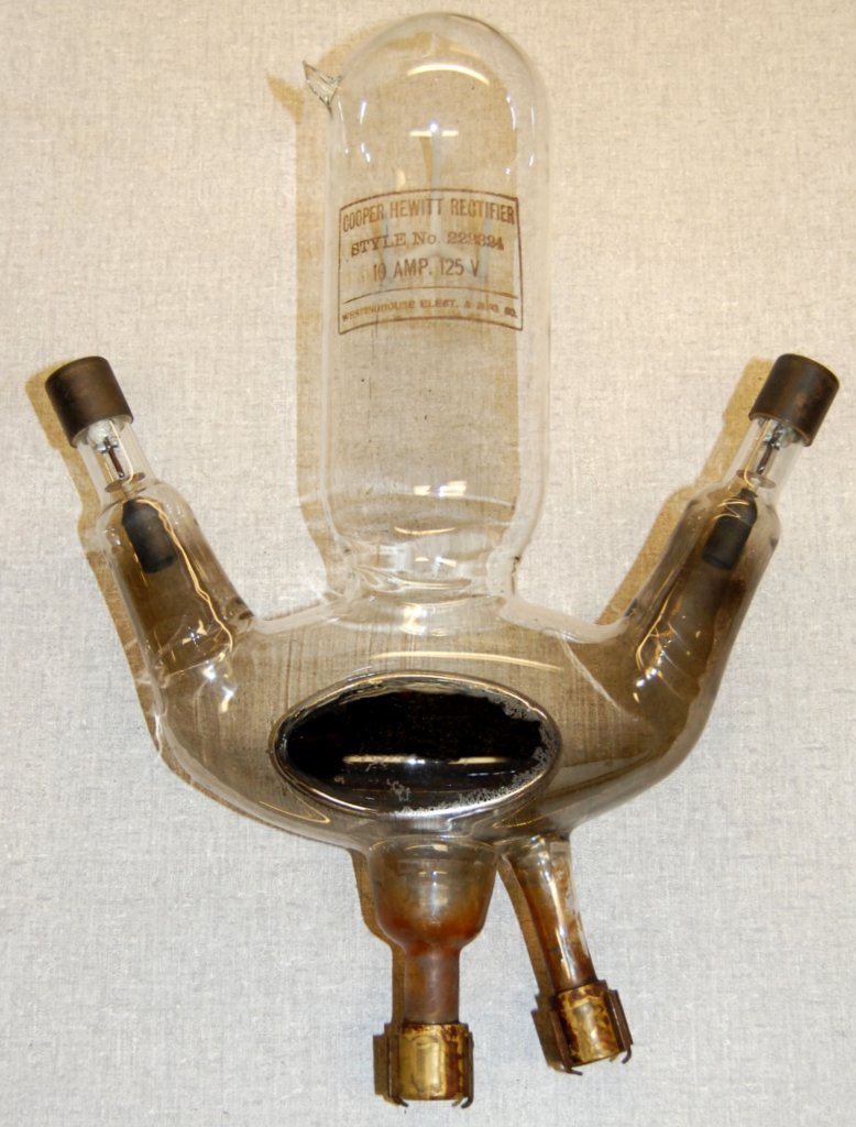 Mercury arc rectifiers were also known as Cooper-Hewitt rectifiers. They provided DC from an AC source as an arc between a pool