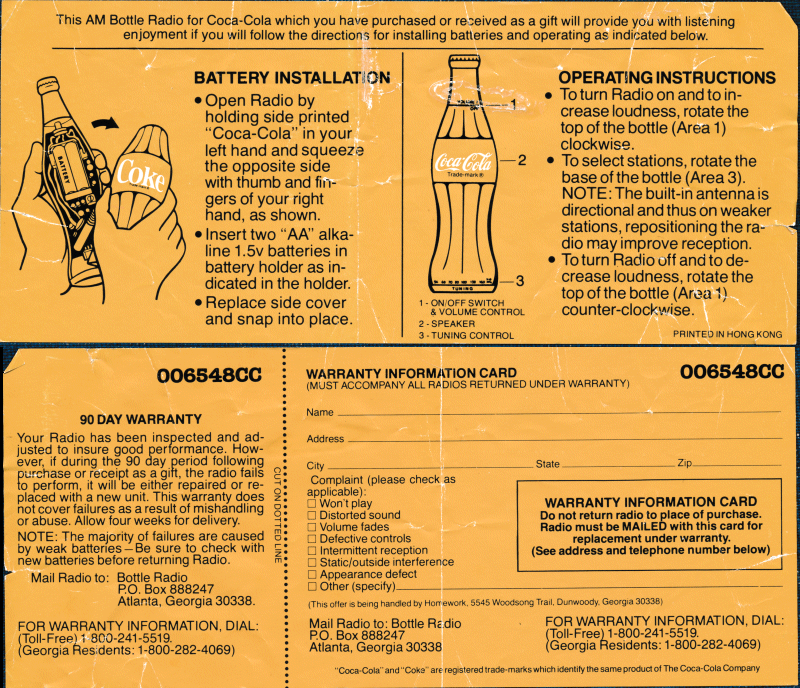 This AM Coke bottle transistor radio from 1979 is the same size as a 6½ ounce Coke Bottle of the time.