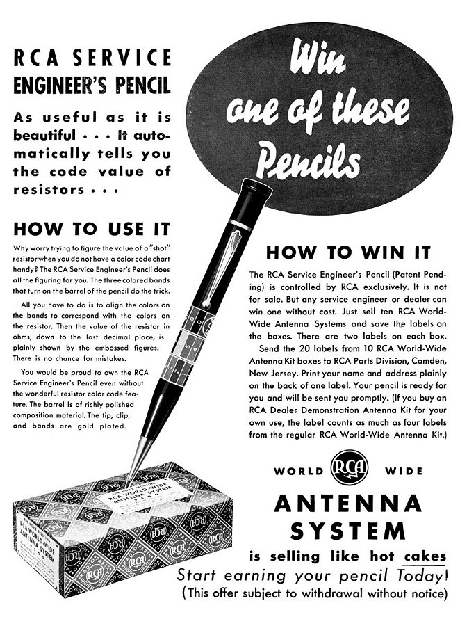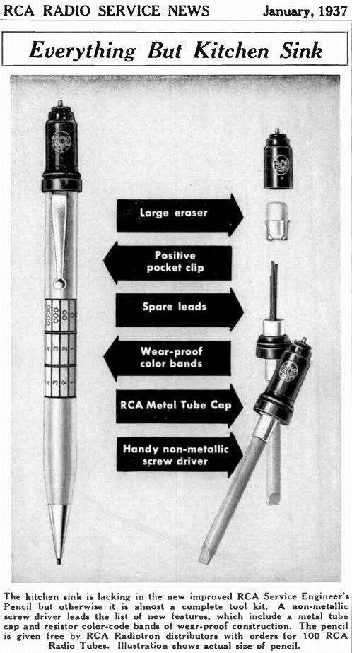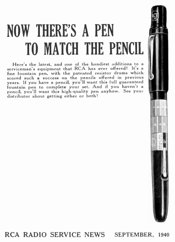 "RCA Service Engineer's Pencils" were given out as an incentives to dealers and later RCA Pen Sets were made available to customers.