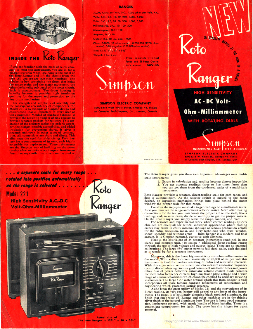 This catalog shows the full line of Simpson test equipment for radio and TV servicing. Almost every piece of test equipment listed above is contained in this catalog.