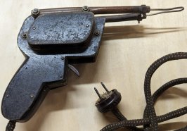 The Soldering Gun was invented by Carl E. Weller in 1941. Soldering guns heat quickly when a trigger switch is pulled and cool rapidly when put down. Check some out here including Carl Weller's first "Speedy Irons". |