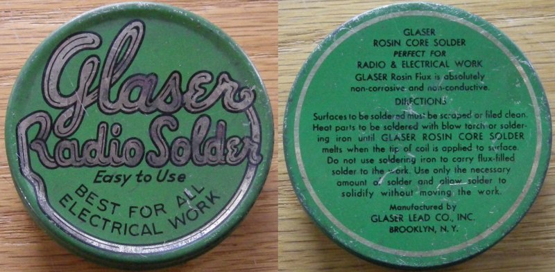 Glaser Radio Solder Tin. Most likely around mid 1930s. Instructions on bottom of tin.