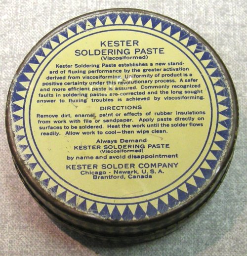 Kester soldering Paste was applied to clean surfaces before soldering to allow a smoother flow of solder. Paste was generally used on plumbing or sometimes on larger elctrical connections to help with heat transfer.