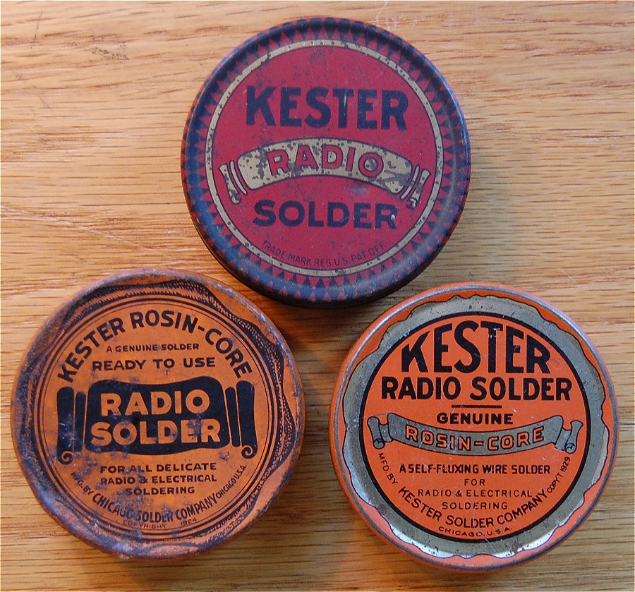 The lettering on the solder reads "KESTER RADIO SOLDER (ROSIN - CORE) CHICAGO SOLDER CO.".