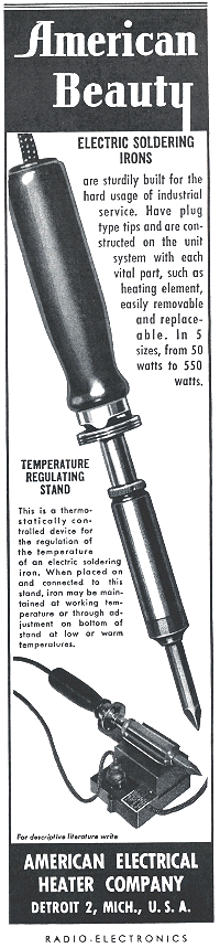 It looks like the transformer housing is home made but the system came with two gun type soldering irons an there is a 1946 advertisment below that lists transformer powered irons.