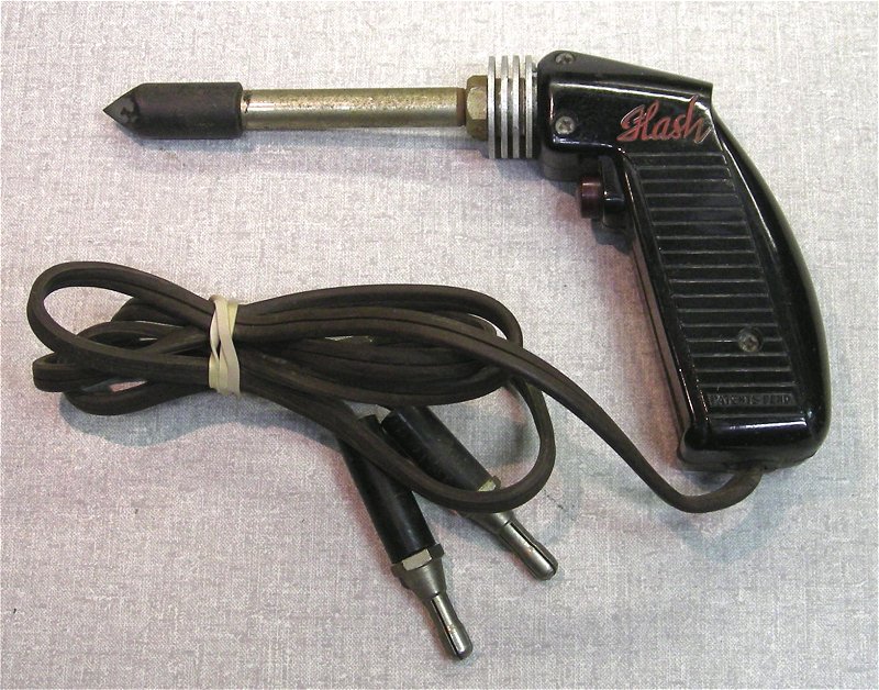 Flash Soldering Irons were manufactured by the Baker-Phillips Co of Minneapolis in the 1940s. The "Flash" name might be derived from their ray-gun looks. Or maybe they just heat quick.