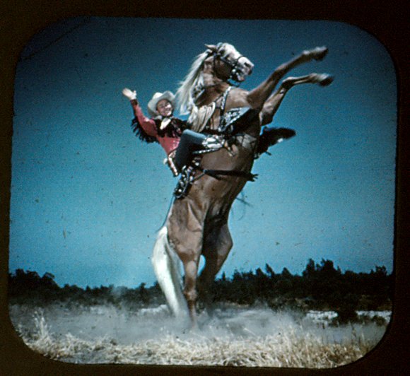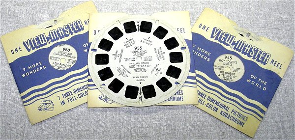 The classic bakelite Viewmaster 3D viewer I grew up with along with three of my Saturday morning TV favorite View-Master reels from the 1950s, Hopalong Cassidy,