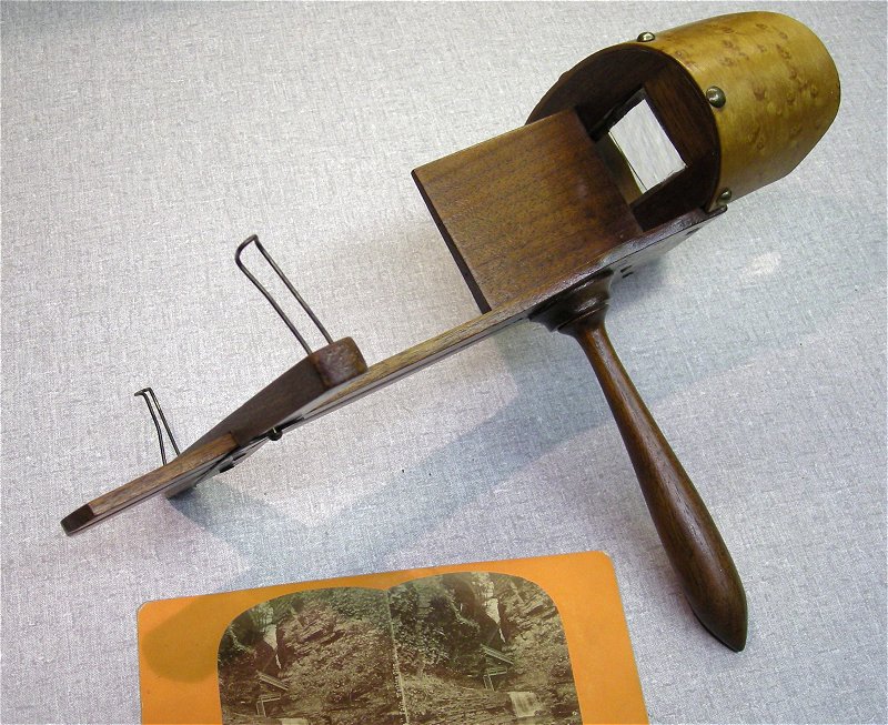 A typical Stereoscope has a sliding holder for bringing a stereoview card into focus.