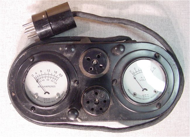Here is a model 1310 Triplett tube tester that tests early 4 and 5 pin tubes from the 20s and 30s. It is a Triplett 1210 tester in the Triplett 1211-A case which was also available separately.