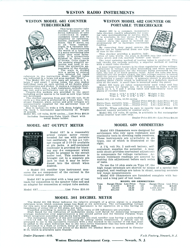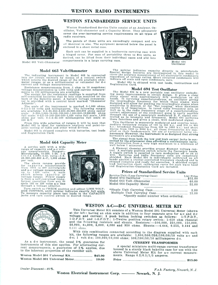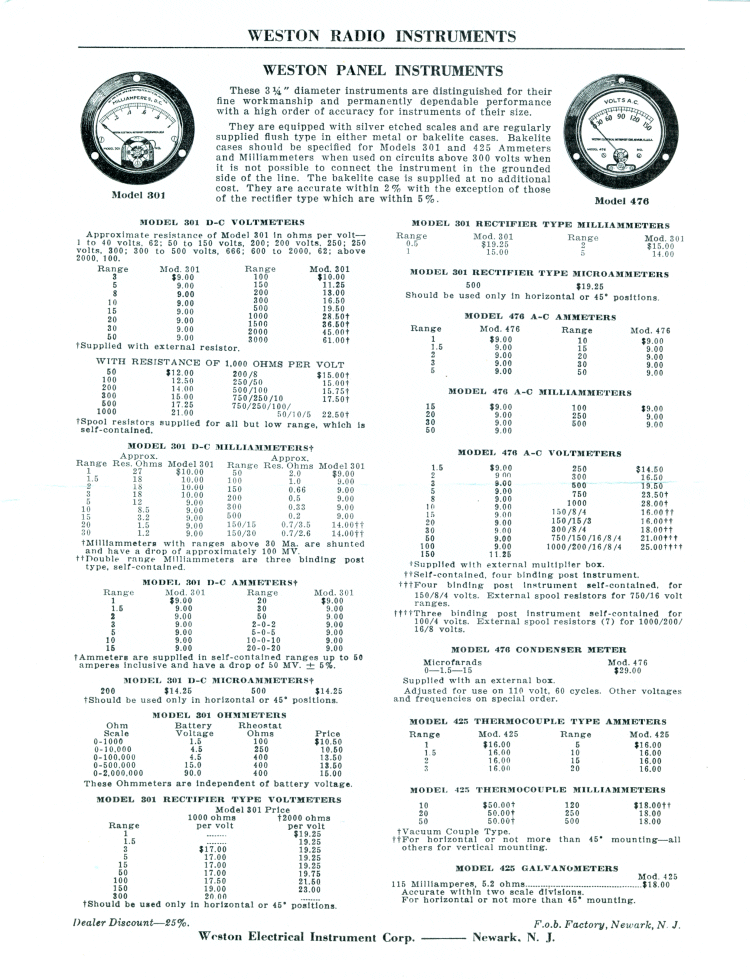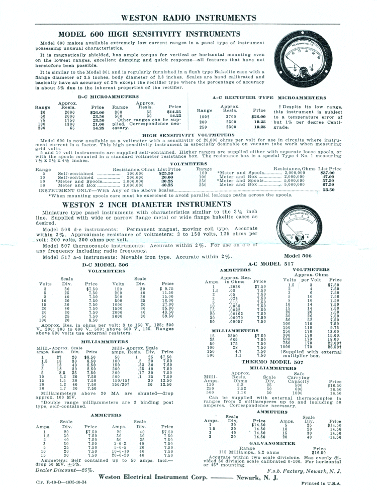Voltmeters, Milliammeters, Condenser Meter, Ammeters: